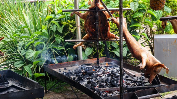A variedade de pratos servidos foi enorme, como o Arroz de Porco no tacho (R$45), o Leitão assado no chão com Maionese (R$250), além dos salgados da estuda, que como já mencionamos antes, a dica da 61 é o “Bolinho de Chambaril com Requeijão com a caipirinha de maracujá pérola do cerrado” e a “Barra de Torresmo”, obras do chef André Batista, tudo isso servido pela trupe de garçons Alencar, Oscar, Thiago e outros 15 colegas. Além disso, teve brinquedos para as crianças e música ao vivo (viola e sanfona) para os amantes da música caipira.