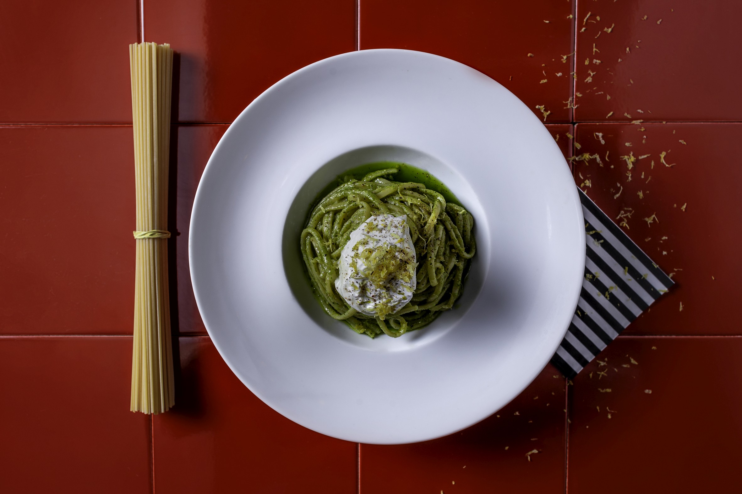 No cardápio da casa, é possível identificar os pratos por quais leites foram utilizados nos preparos, com desenhos simbolizando as características, entre elas se o leite é vegetal ou animal, além de negrito sobre os ingredientes com leite em seu preparo, o que facilita para o cliente entender a elaboração e degustação dos pratos. Para os mais curiosos, é possível até acompanhar a produção, já que a cozinha do restaurante é aberta e conta com 14 lugares em um balcão de frente para os chefs, enriquecendo a experiência. Outras mesas completam 45 lugares na casa.